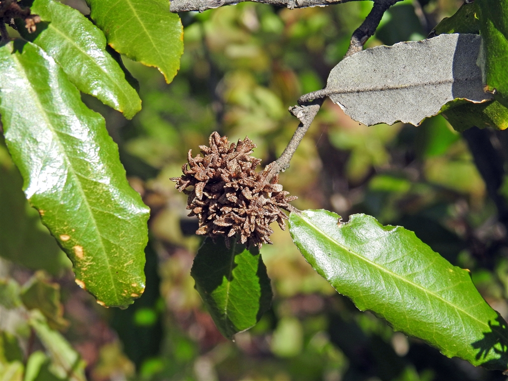 参考写真。苗代グミの葉裏の色。真ん中は新芽の塊。他のグミも葉裏は類似。'16.4.15撮影