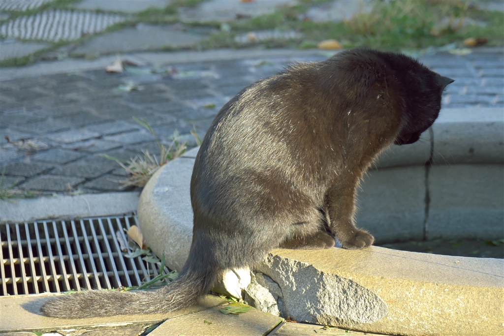 ザリガニを眺める黒猫ちゃん
