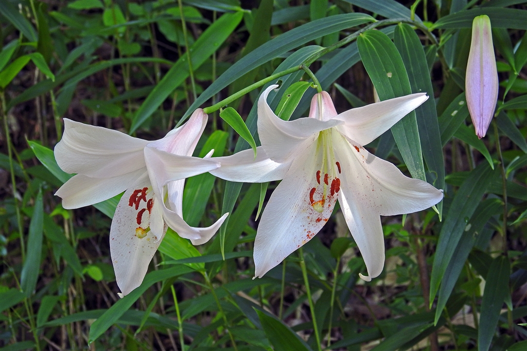 ササユリ(笹百合)咲き出す。日本特産で中部以西の山地の草原や明るい森林に分布生育