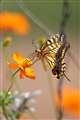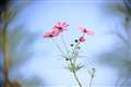 光のコスモスと影のコスモスの重なり。