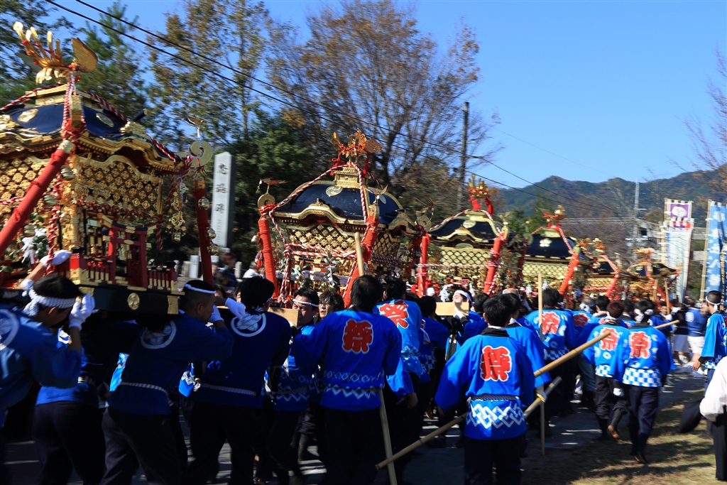 小さいですけど7基の神輿が押し合います