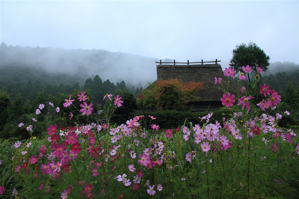雨後の霧が煙るかやぶきの里