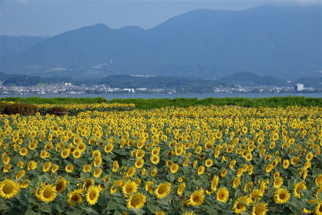向日葵と比良山系遠望