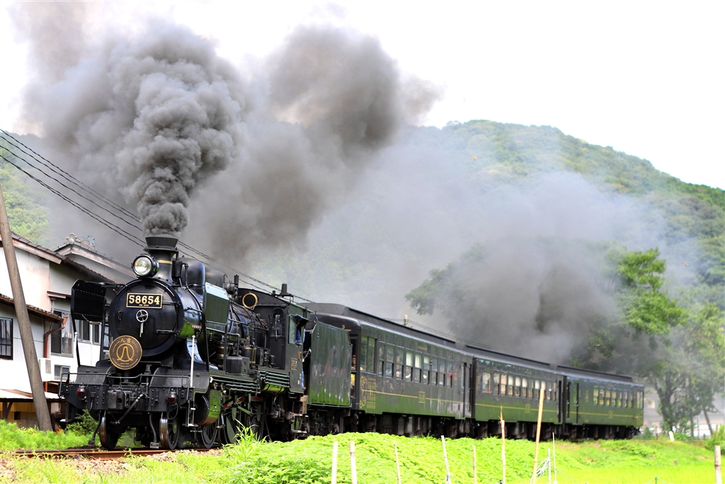 渡駅出発直後のSL人吉