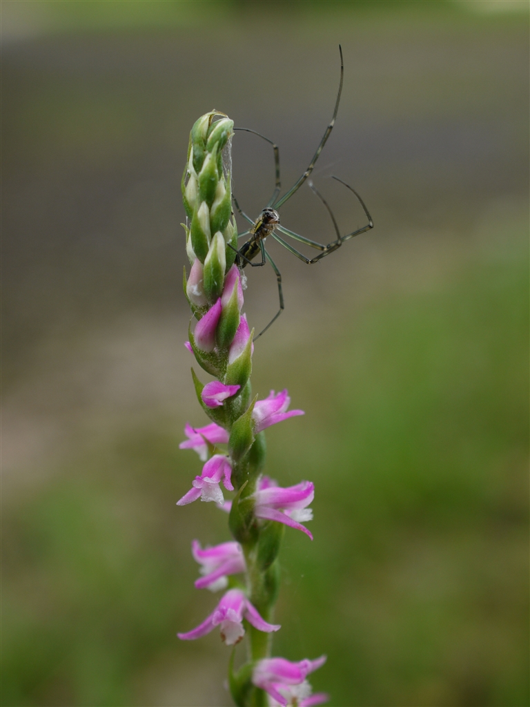 くる禁…ネジバナの上に蜘蛛。
