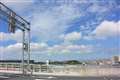 左から、日産スタジアム、遠くに丹沢、近くは、小机城跡、第3京浜、横浜北線ジャンクション工事中、橋の下は、鶴見川と遊水地