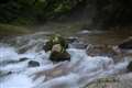 エサ捕り失敗して悔しそうな顔をして水を吐いたところです。