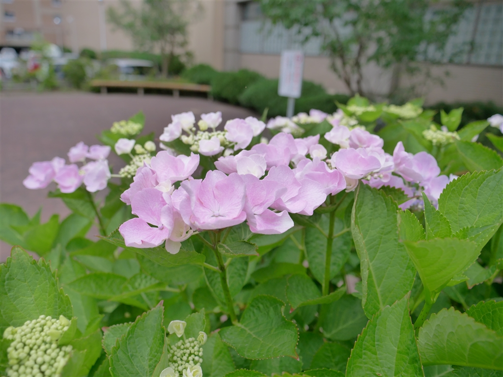 ビンク色 エゾアジサイ2 もうそろそろ満開かな
