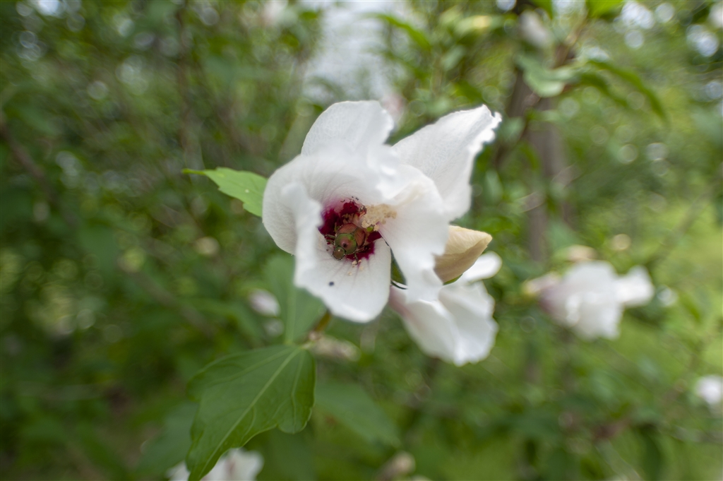 SMC Takumar17/4 DxO PhotoLabで現像。なんちゅーボケ。ムクゲの真ん中に甲虫が。