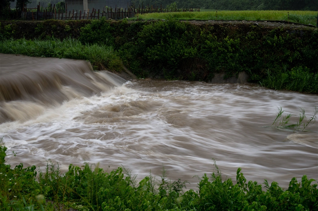 蒲生川へは濁流の大水です。