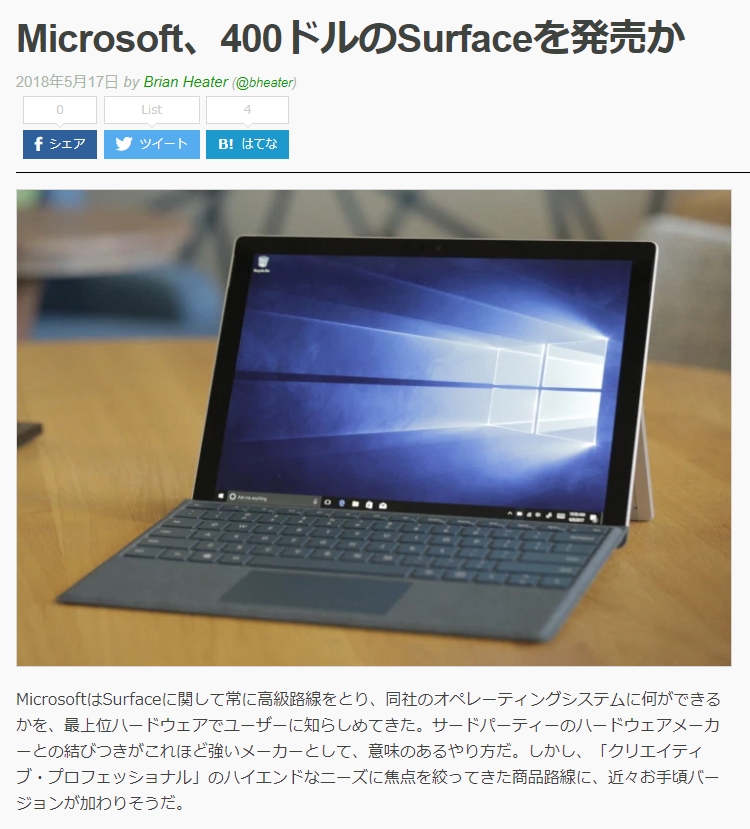 『Microsoft、400ドルのSurfaceを発売か』 ノートパソコンすべて CwGさんのクチコミ掲示板画像1/2