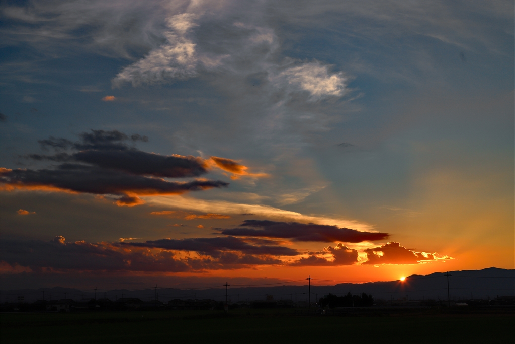夕日。。。何時もの場所から。。奥の山は比良山系です
