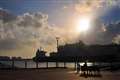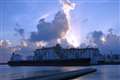 青空のまま雲に沈んでいく太陽の輝きを、船体を潰す事無く描いています。