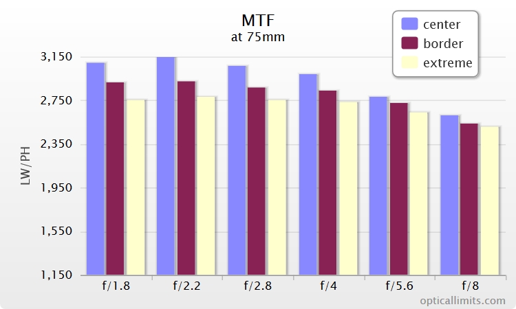 Olympus M.ZUIKO 75mm f/1.8 EDのMTFデータ