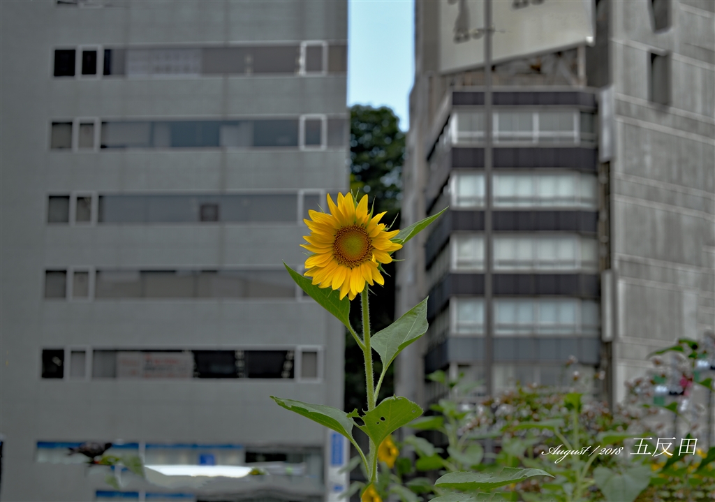 ビルを背に