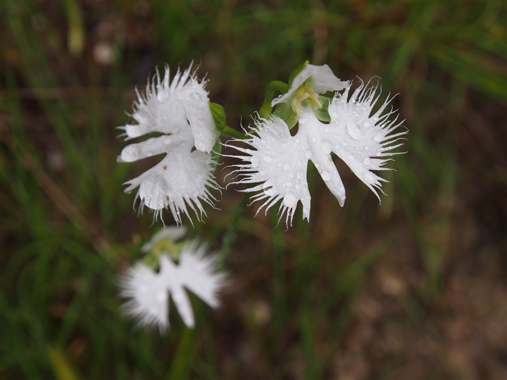 雨粒に濡れるサギソウ。