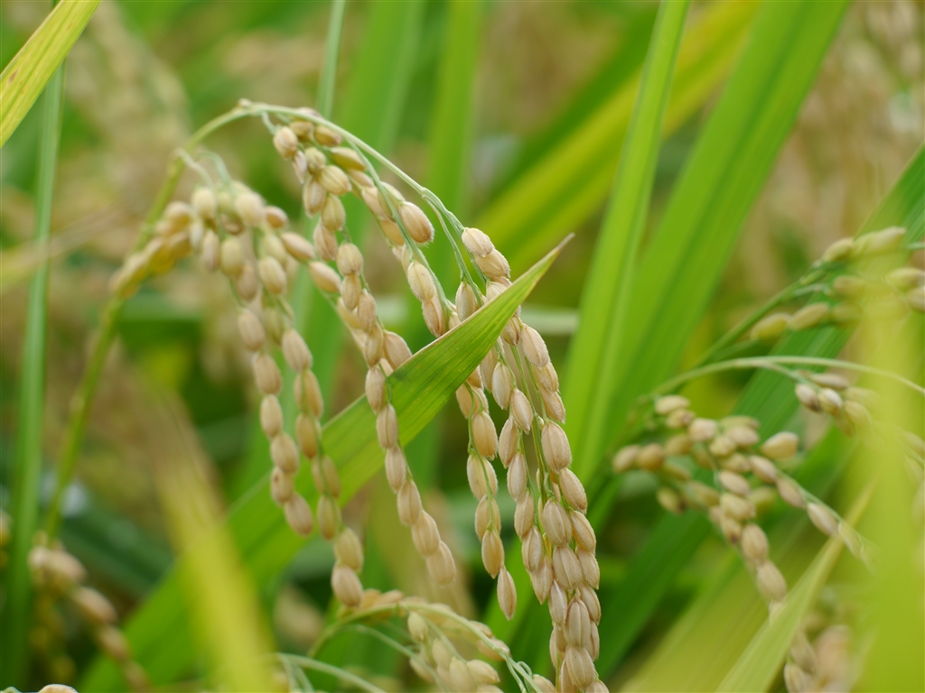 稲穂がたわわに実っています。