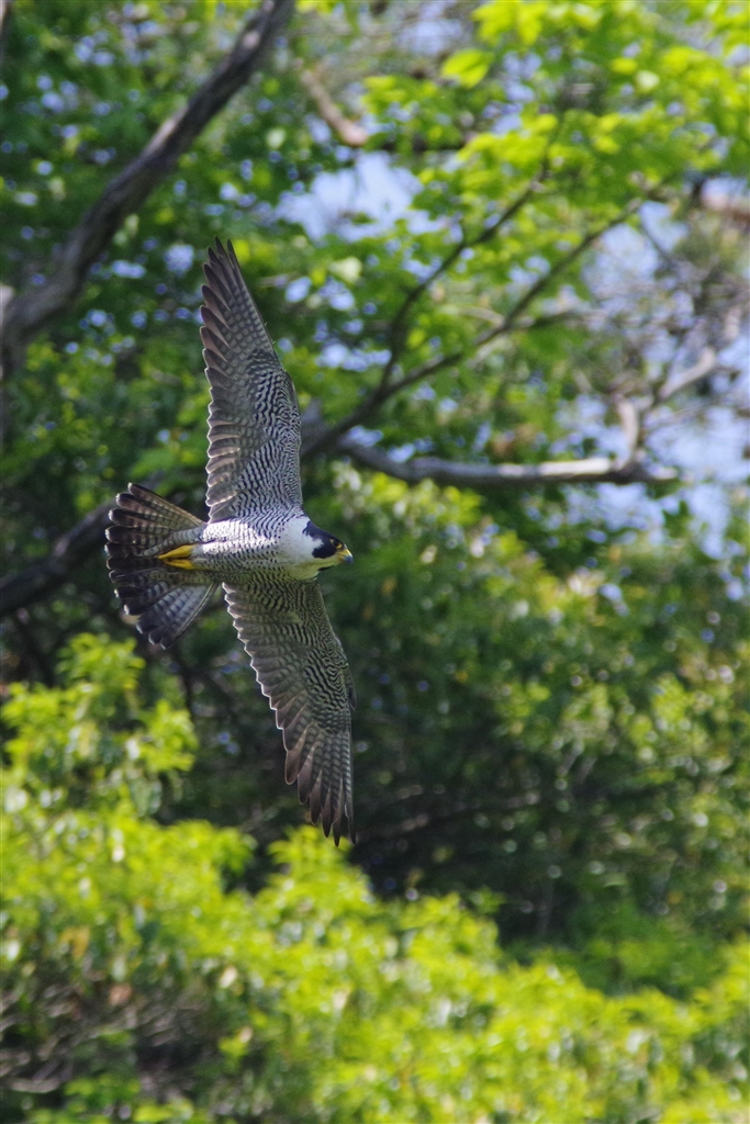新緑バックの飛翔シーンです
