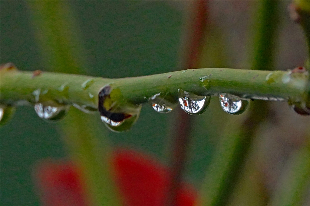 バラの枝に水滴