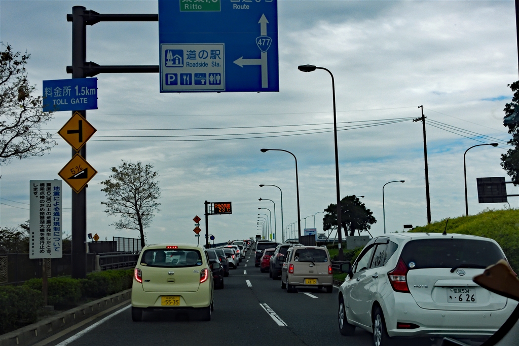 琵琶湖大橋 帰宅前に道の駅へ 超渋滞この様な光景初めてです