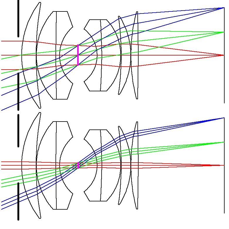 レンズの前に絞りを置く