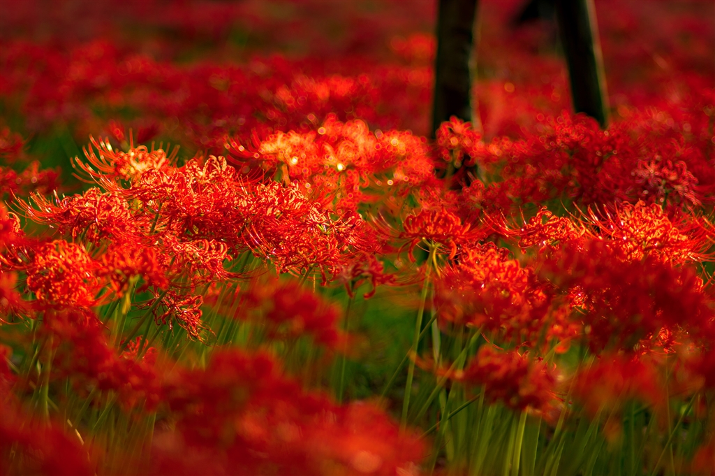 巾着田 早朝は曇りでした ほんの一瞬の陽射し