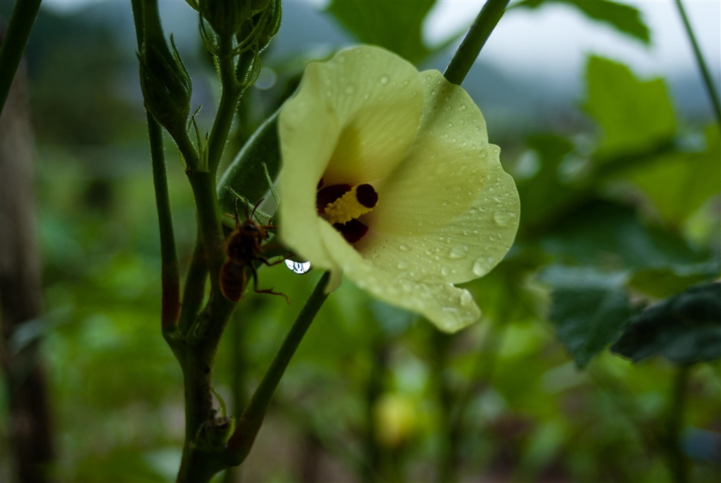 シャッターを押そうとすると黄色スズメバチが。