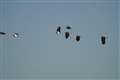 私も1度だけ見た事があるのですが、その時は頭上をかすめ遥か彼方の方へ飛び去って行きました。
