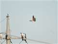 水戸駅近くのNTTの電波塔に毎年1週間くらいやってきて、チョウゲンボウとカラスとバトルしては去ってゆく、毎年恒例のハヤブサ。いつもなら9月上旬登場なのに、今年は8月下旬に1羽目が登場しました。