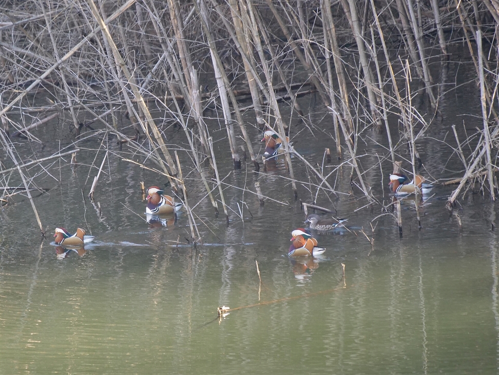 野池のオシドリ、超警戒心旺盛です