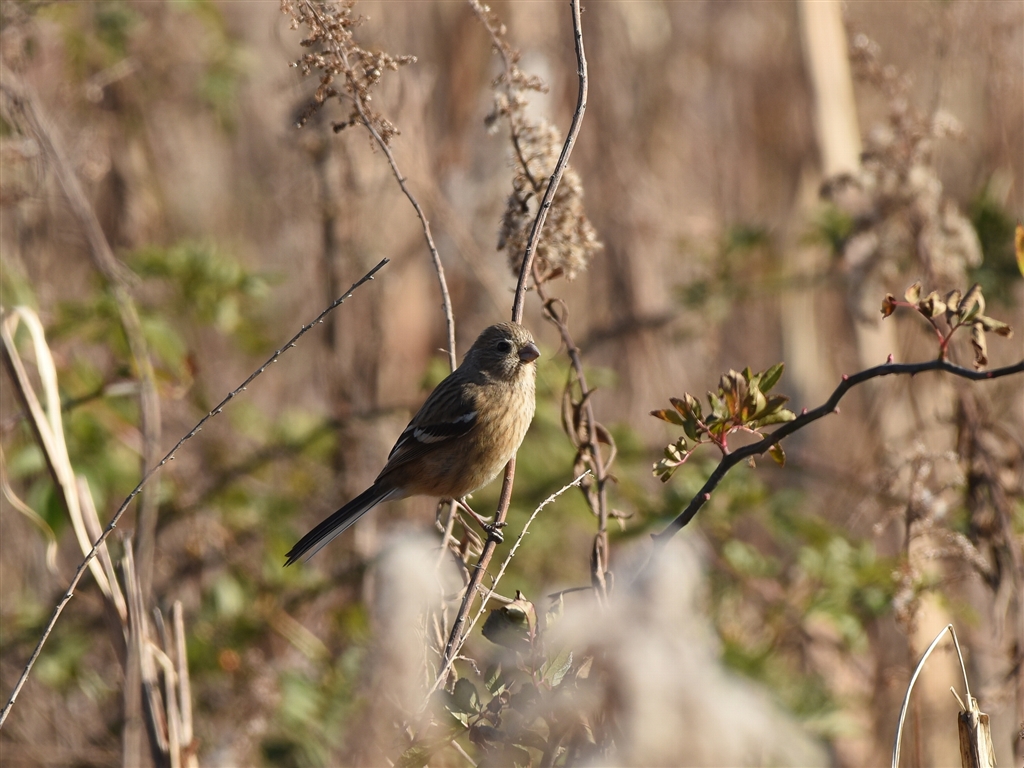 ベニマシコ♀ 背景はほぼ枯れ尽くしたセイタカアワダチソウみたいです