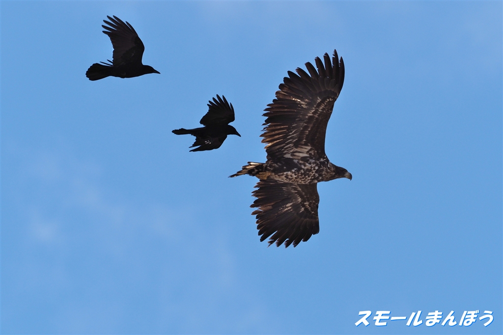 カラスに追われるオジロワシ(ノートリ)