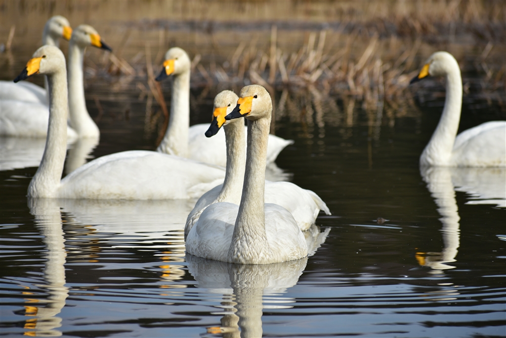 オオハクチョウの方が多いです。