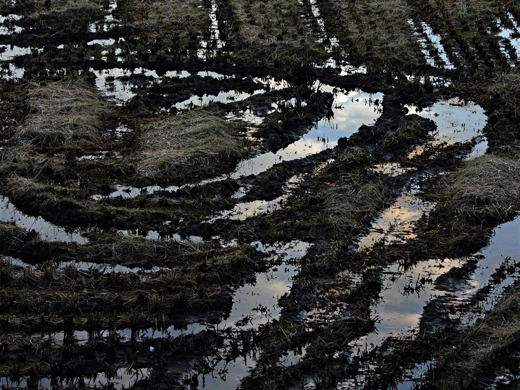 稲刈り後の朝の光景