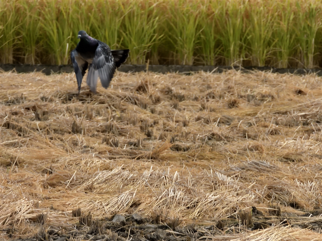 鳩が飛び出したのでシャッターを切って追い始めたが、カメラを振るのが遅れ気味