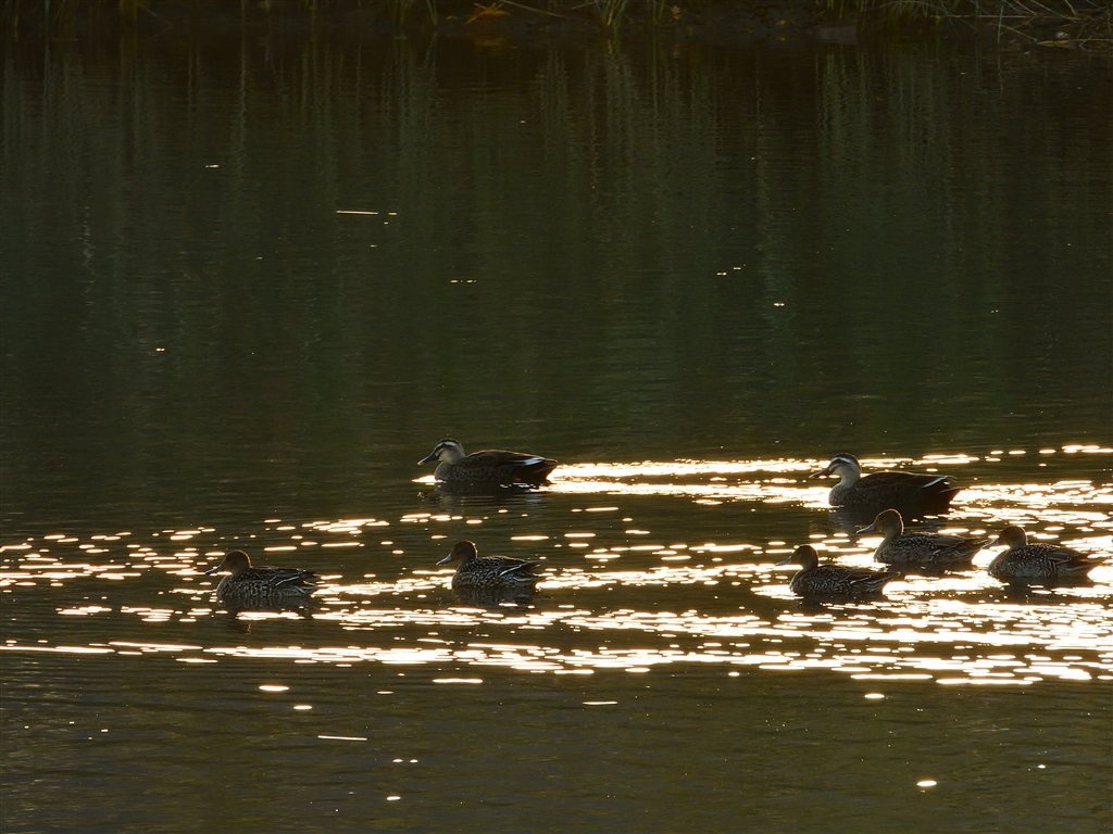 朝早くから群れで動くカモたち