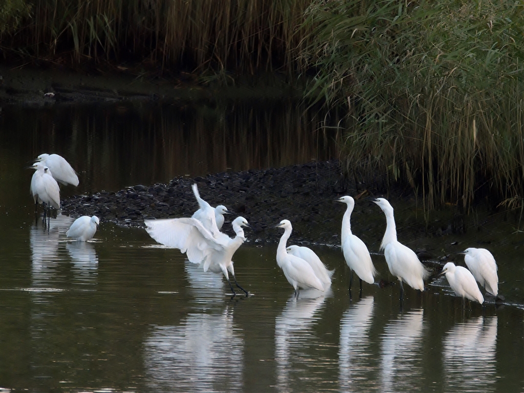 朝の川縁のシラサギ −2