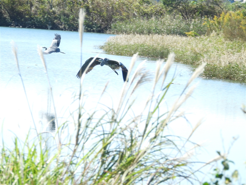 手前に雑草が来ても ピントはアオサギのまま維持してくれた