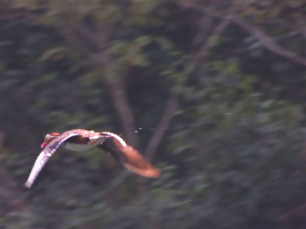 通り過ぎて去って行くオシドリ AF枠をさっと広げられると追えるのだができなかった