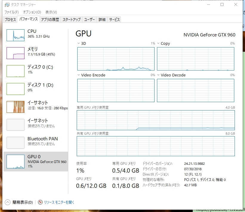 動画再生時のタスクマネージャーです