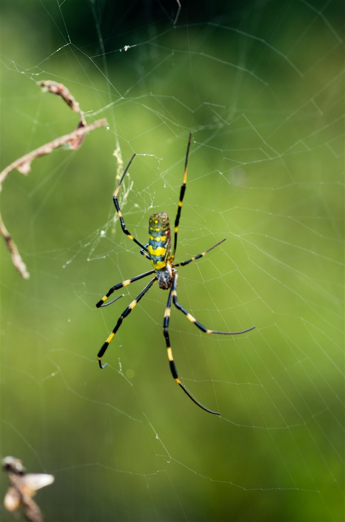 蜘蛛と巣の主にも朝日。