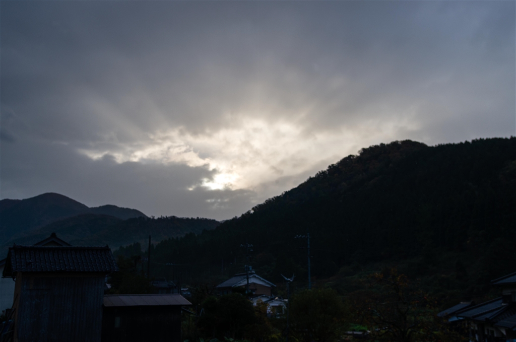 朝早くはほゞ雨上がり、朝の太陽の陽ざしも