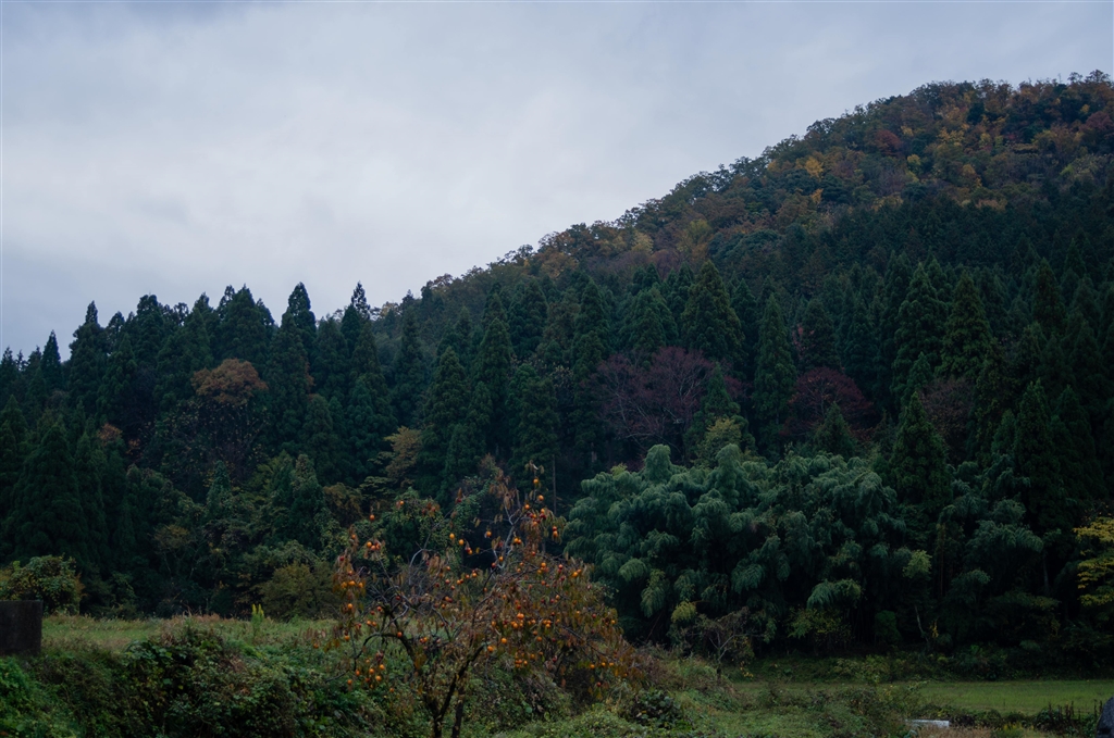 紅葉し始めた山裾。