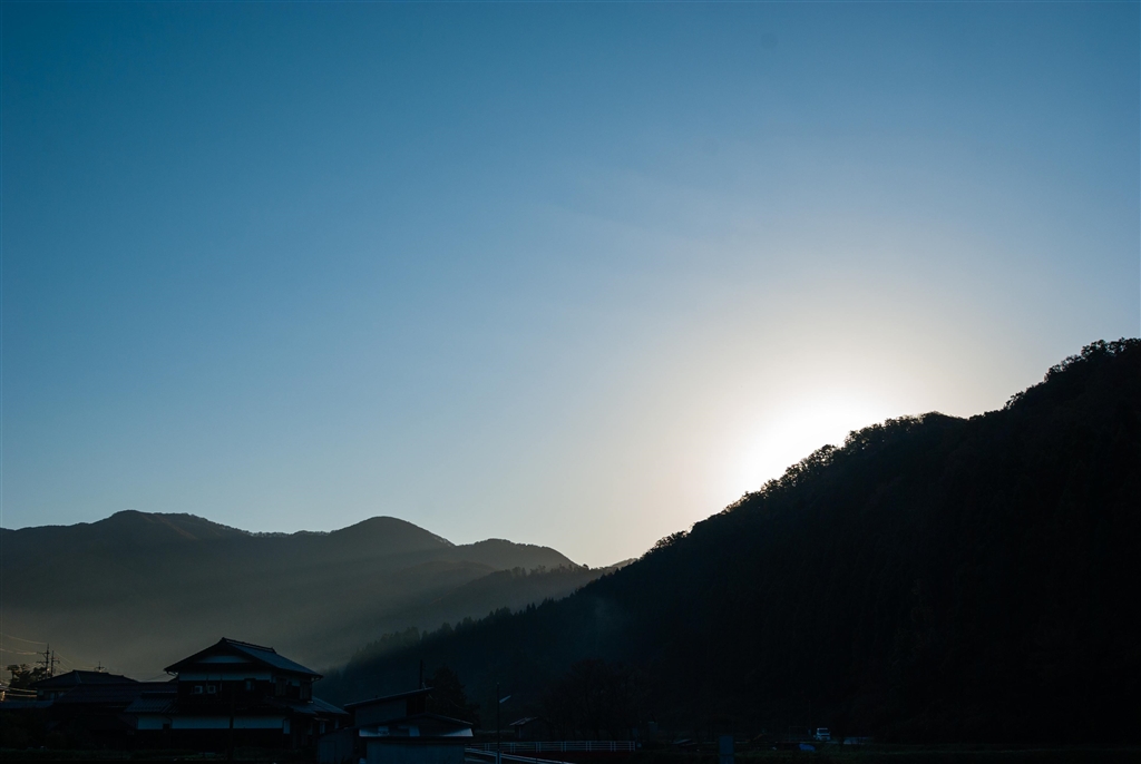 山の稜線からの朝日の出。