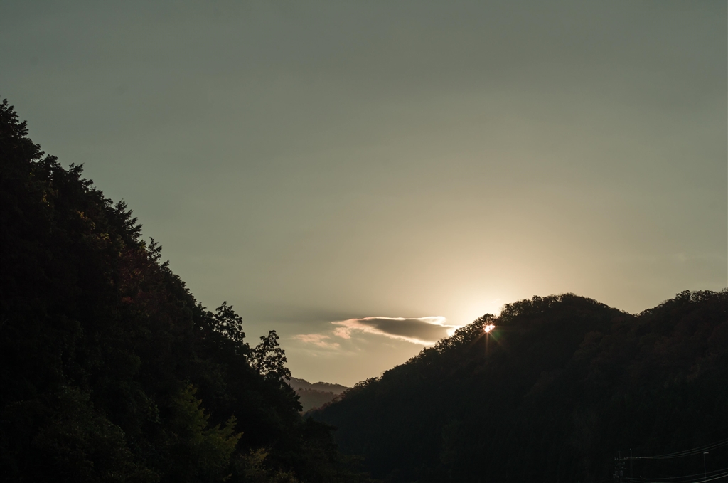 山の稜線からの朝日の出。