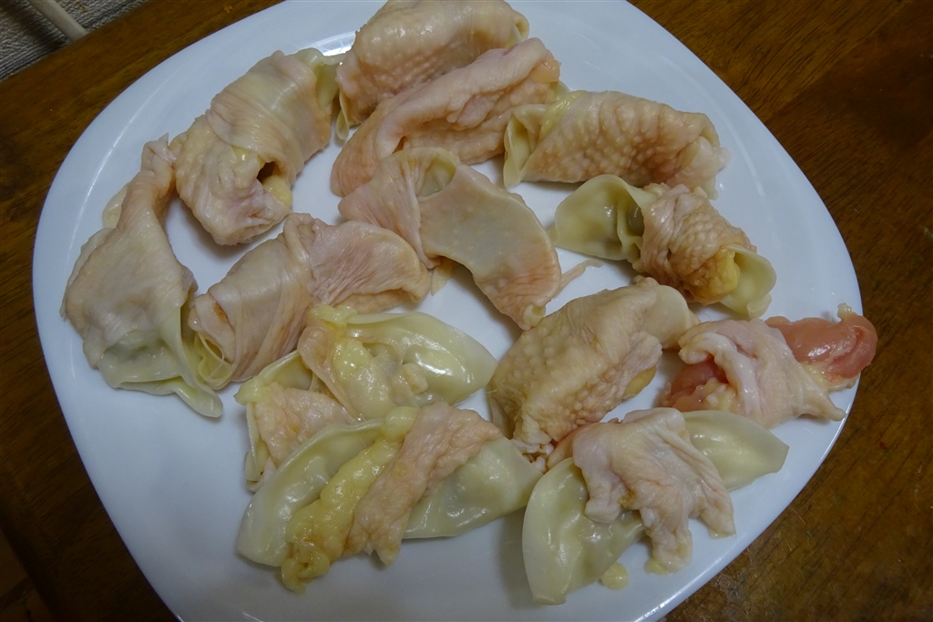 餃子に鳥皮を巻いて......