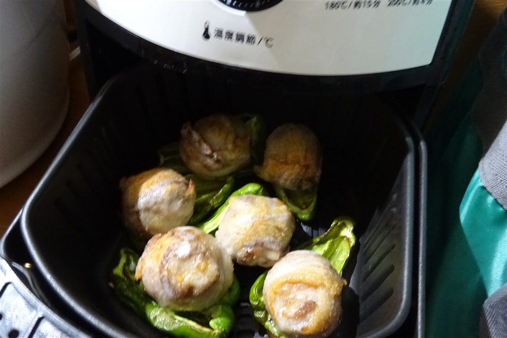 トマトの肉巻きピーマン乗せをカラーラで焼きました。