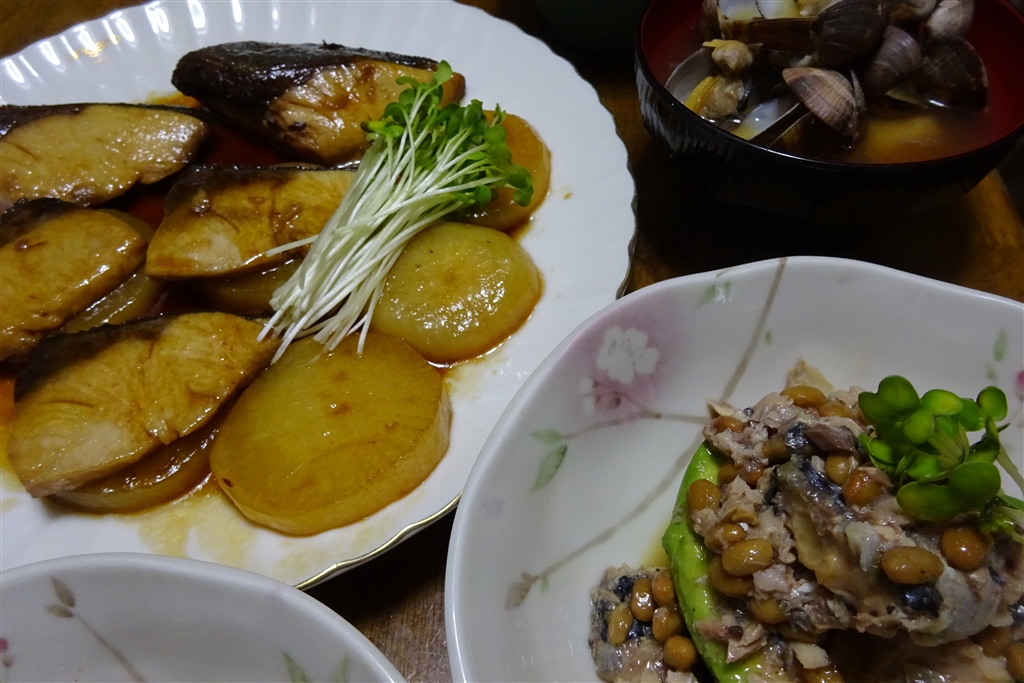ブリの照り焼き風ブリ大根とアボガド鯖缶納豆!