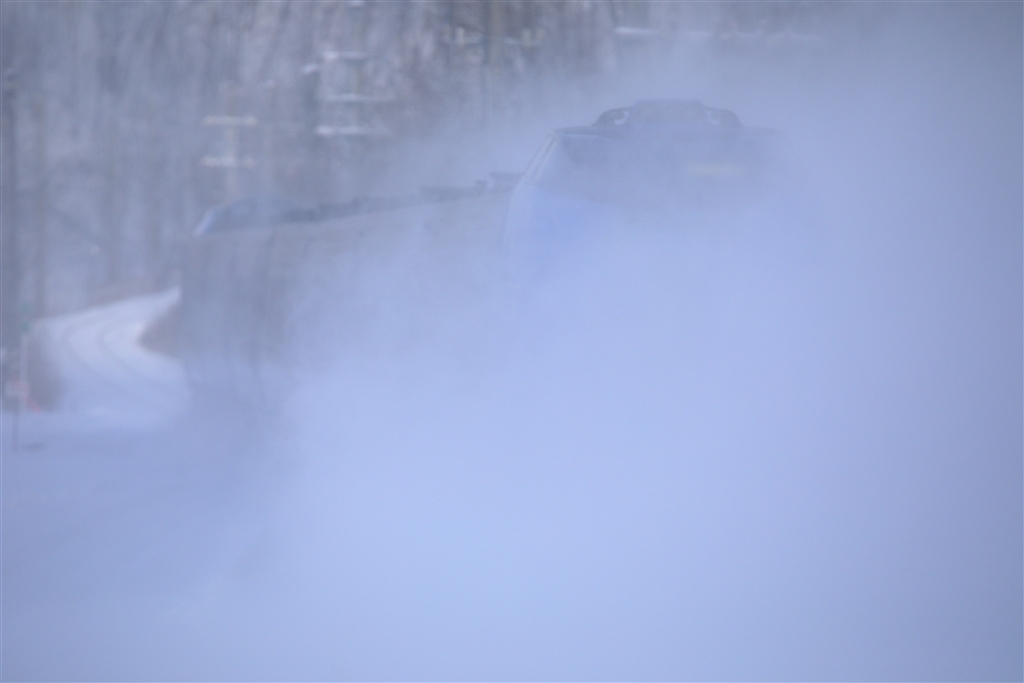 欲張りすぎて雪煙で列車が見えません。(?_?)