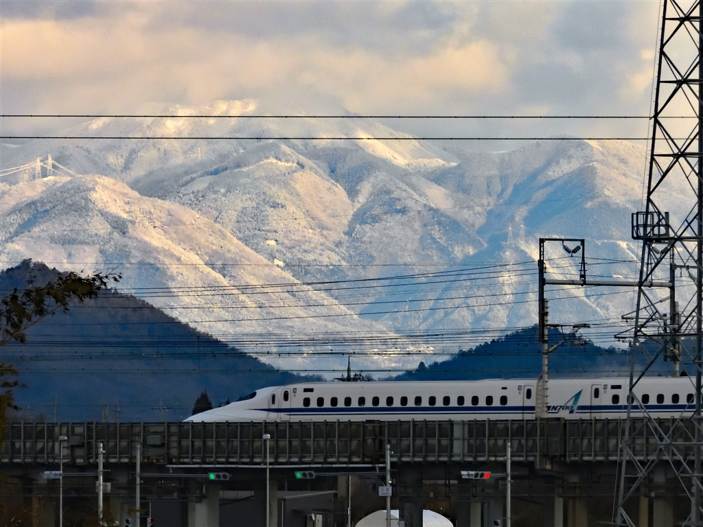 鈴鹿山系をバックに。。私の好きな冬景色です。今年も撮れました。